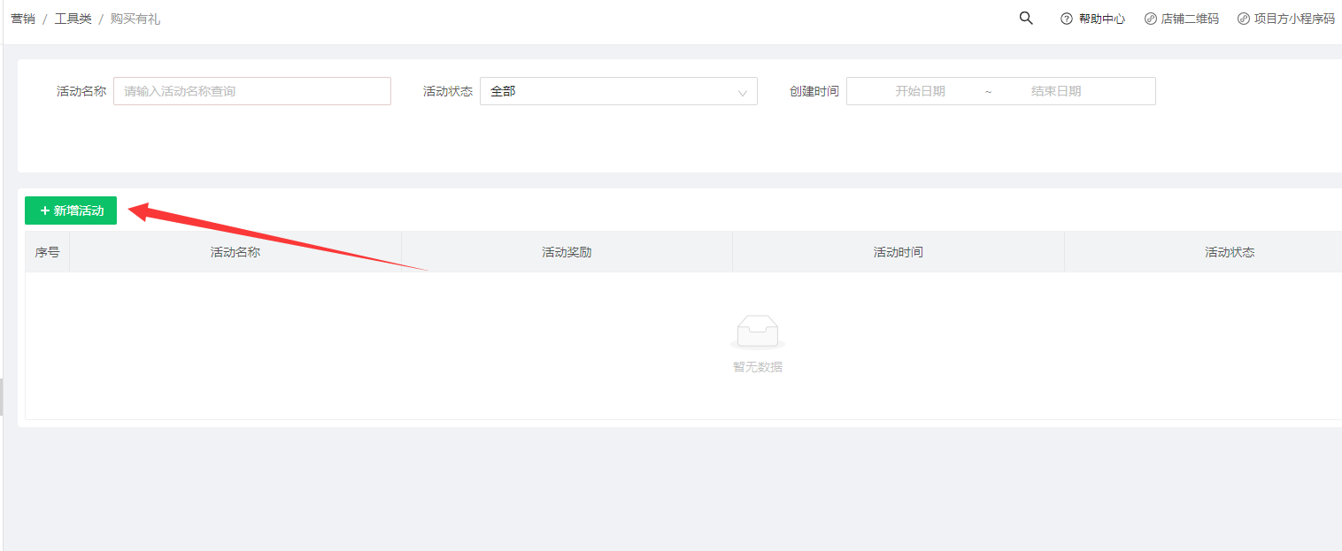 新增活动:创建活动之前,如赠送优惠券的话,需要先新增好优惠券,新增优惠券的路径:在营销,优惠券