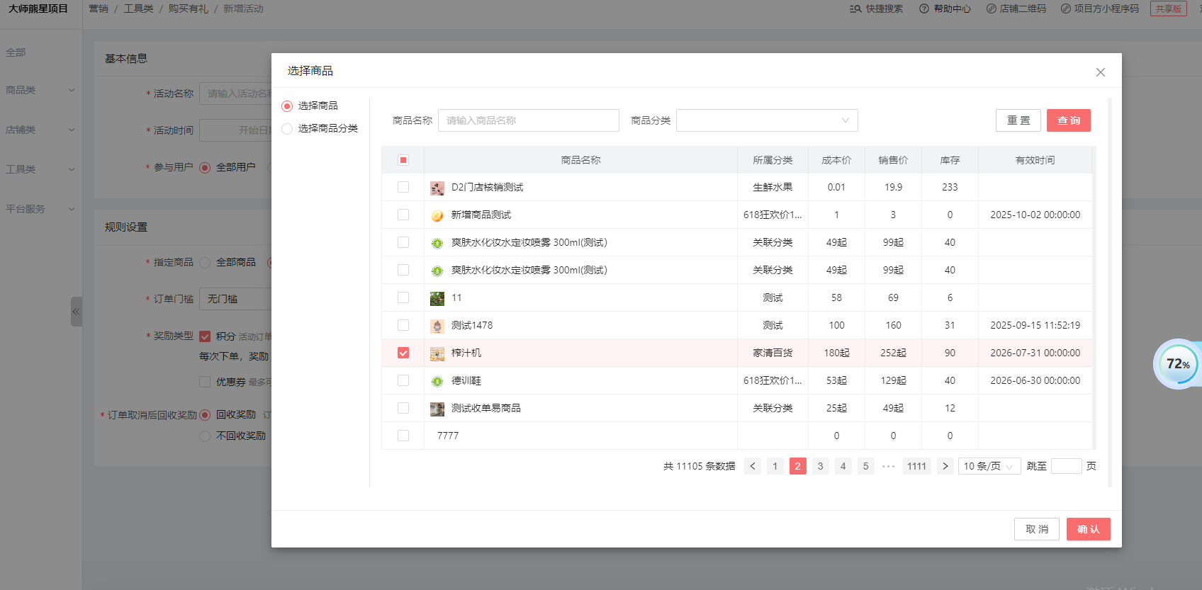指定商品,可以是全部商品,指定商品,或者指定商品不参与 都可以选择