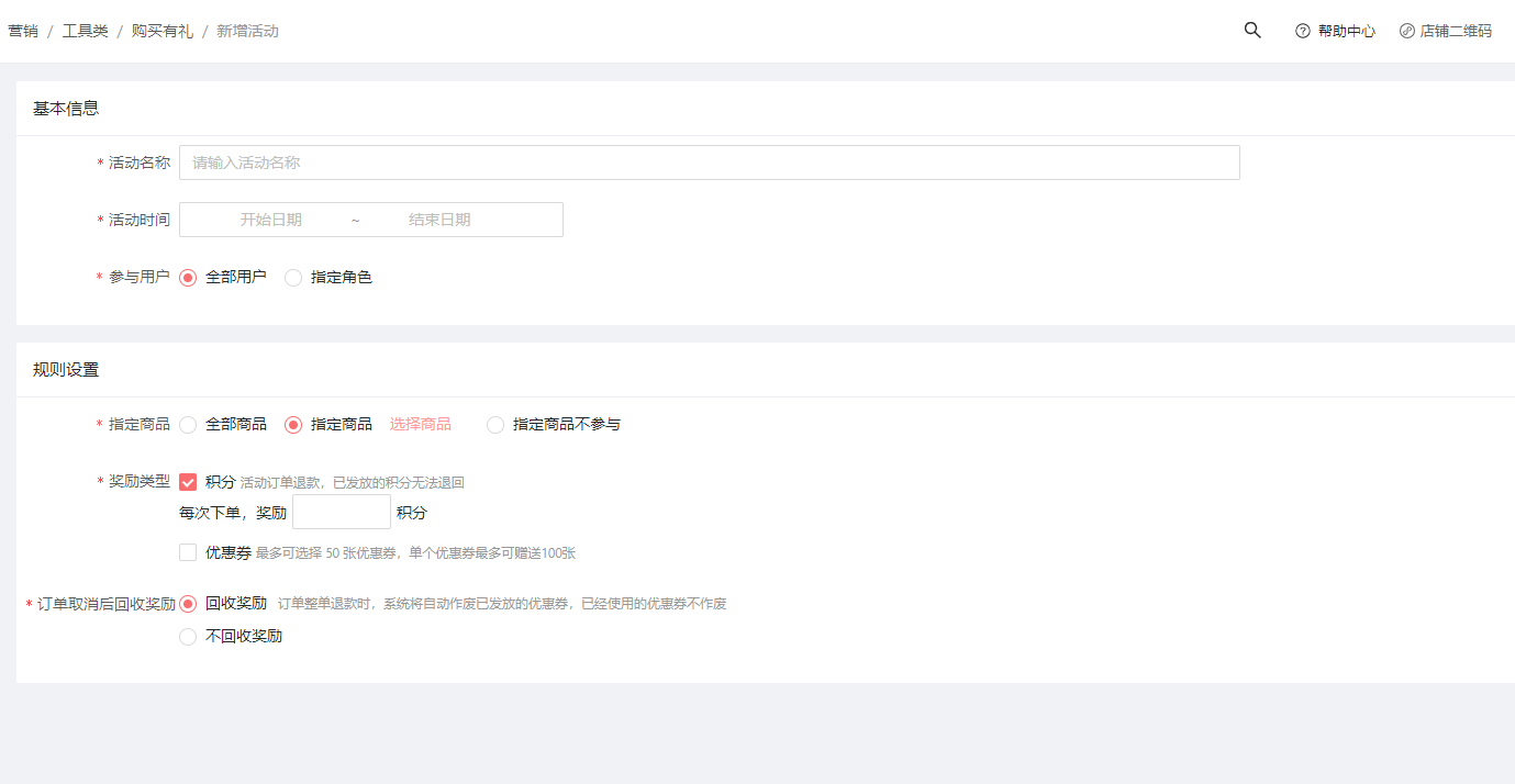 奖励类型:单独赠送积分,单独赠送优惠券,或者积分和优惠券可以同时一起赠送。