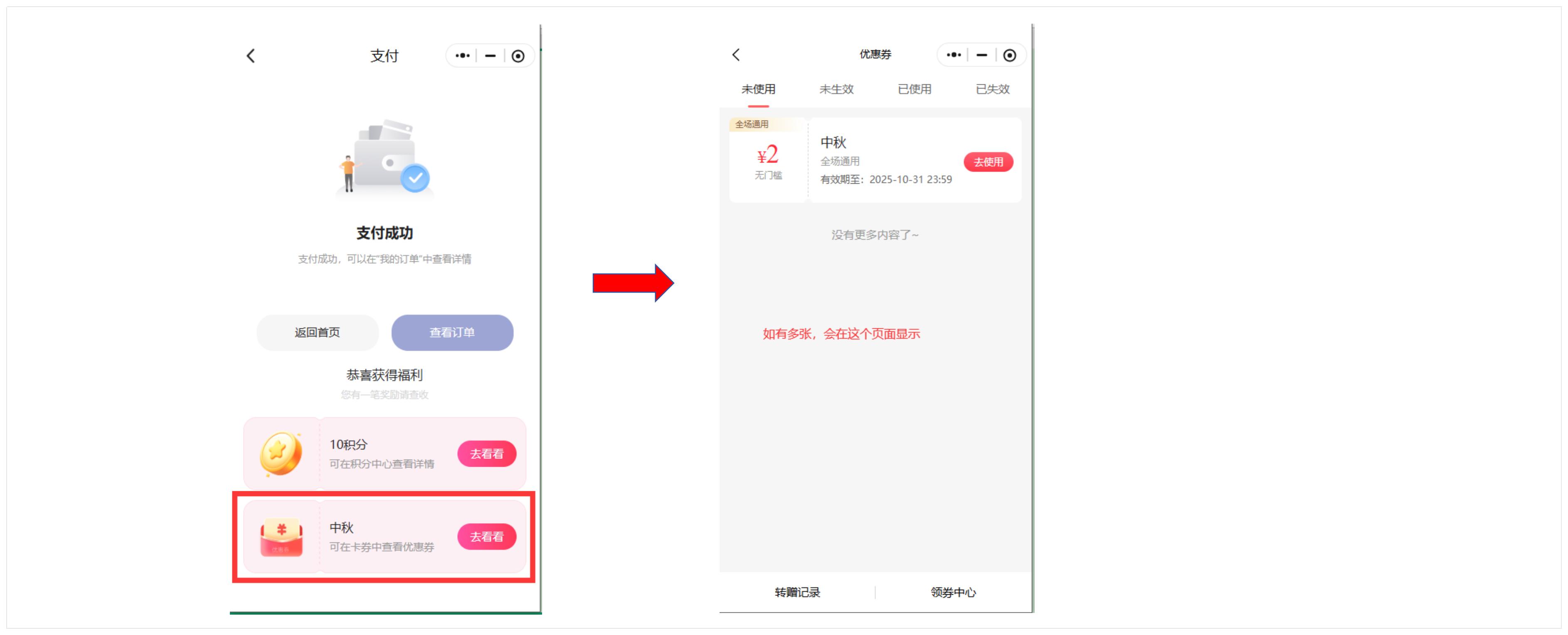 即用户通过购买指定商品付款成功后,赠送积分或者优惠券,以此来刺激用户下单。
