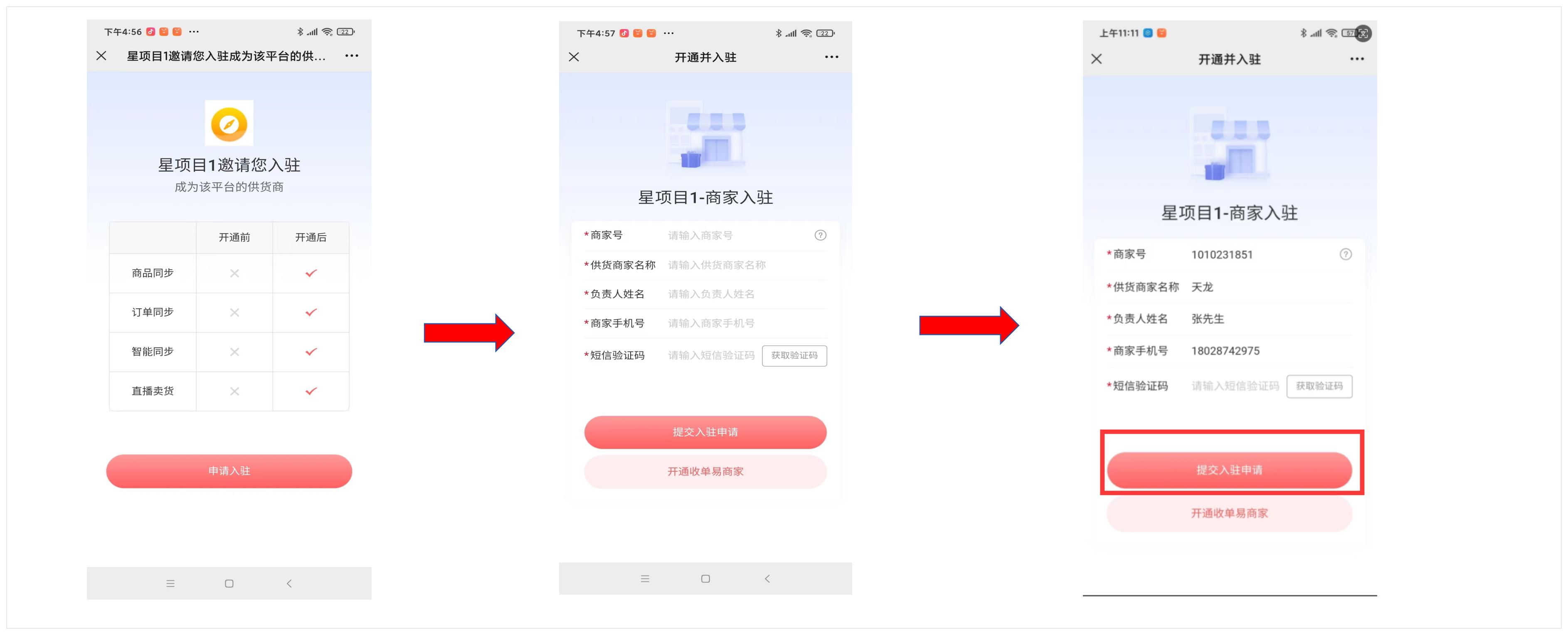 以上只是通过邀请链接成为收单易的商家,实际还没有入驻,还需要走一步入驻的流程。