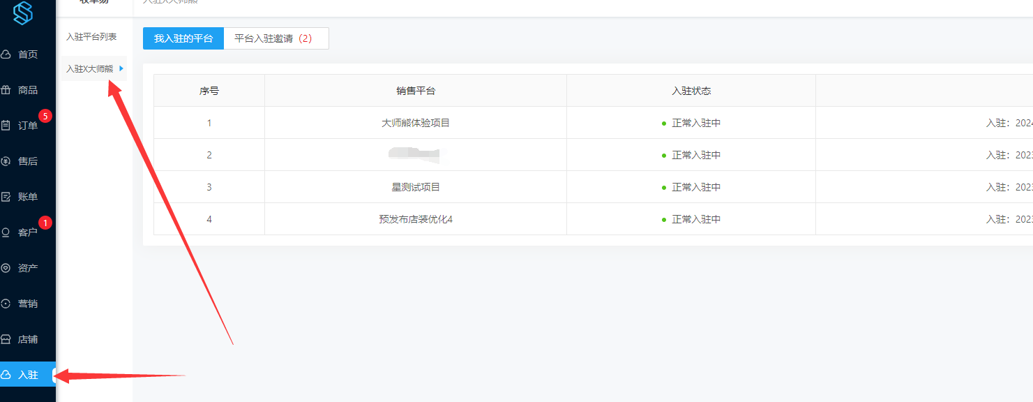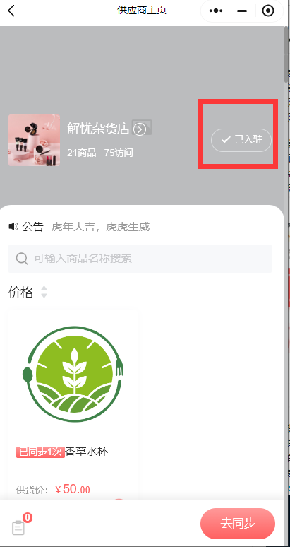 确定同意后,就可以在大师熊后台在进入搜索这个商家,就会显示已入驻了,就可以直接选品,同步商品了,编辑上架了。