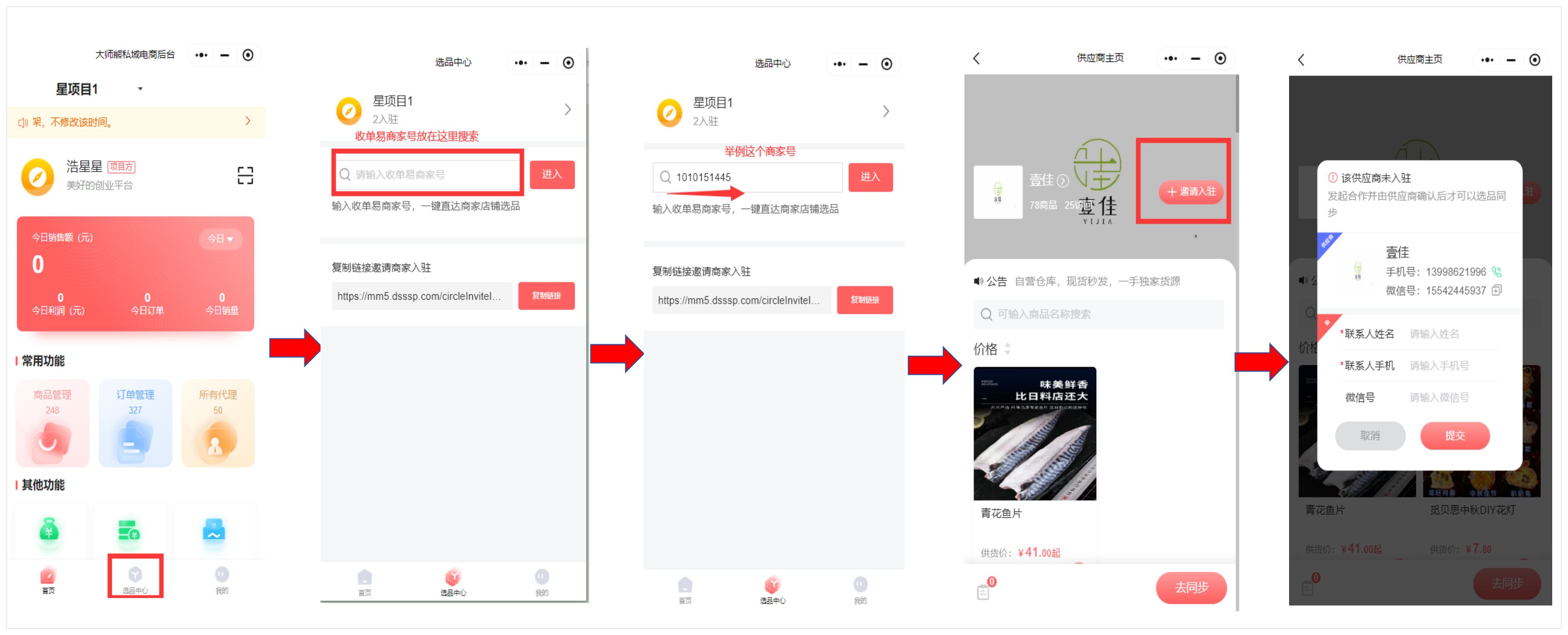 1.已经注册的商家,需要在对接群联系我们,提供已经注册的商家信息表,只要在小程序后台-选品中心搜索