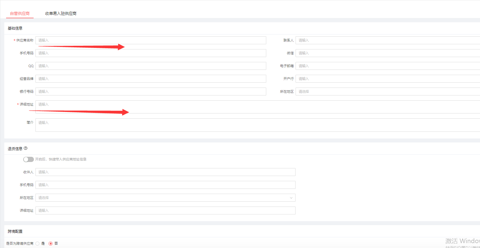 主要分为基本信息和售后地址信息,如这个供应商对应商品有运费的话,在上架商品的时候有单独选择运费的模板。