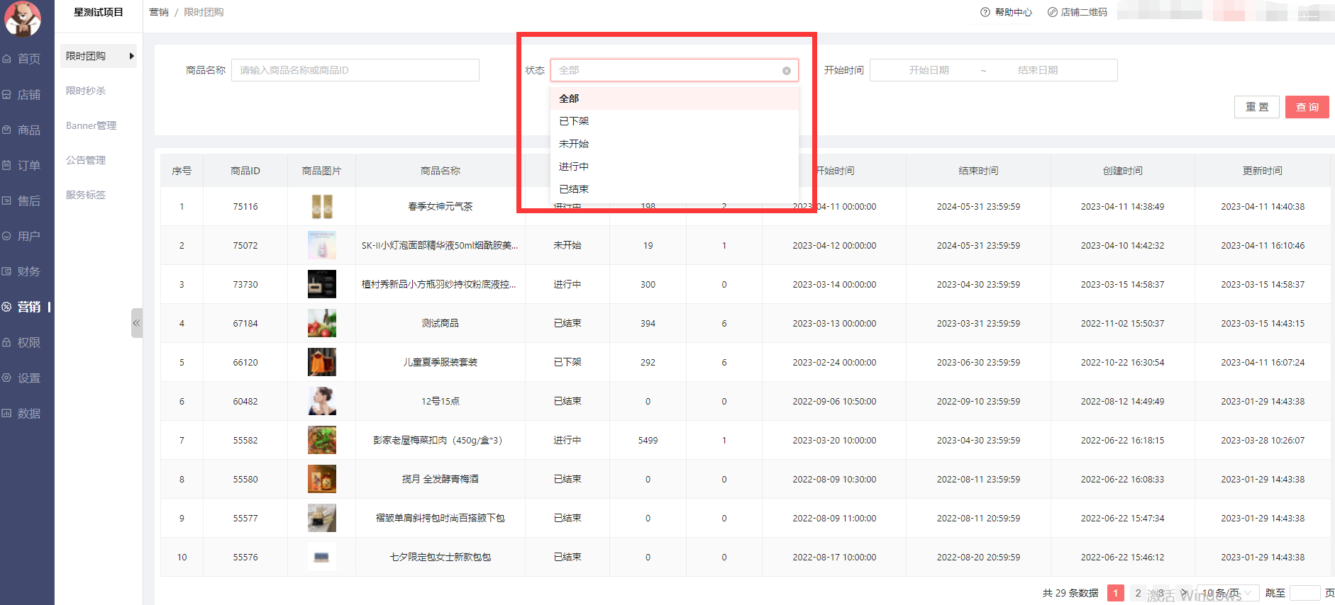 已结束:表示商品已经到下架结束时间的商品。