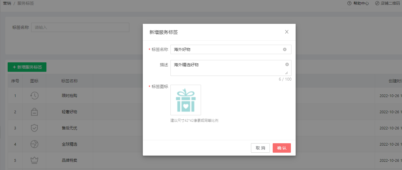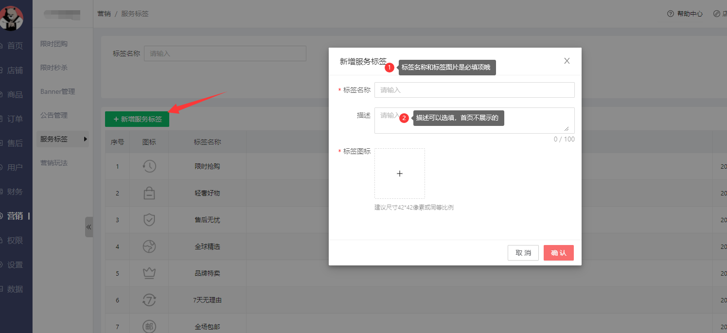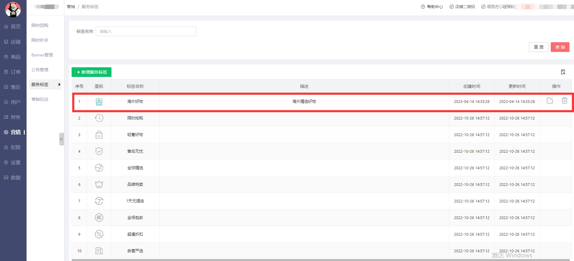 温馨提示:系统会有10个已经创建好的标签,默认的这10个标签不支持编辑和删除,后面新创建的可以编辑和删除哦!