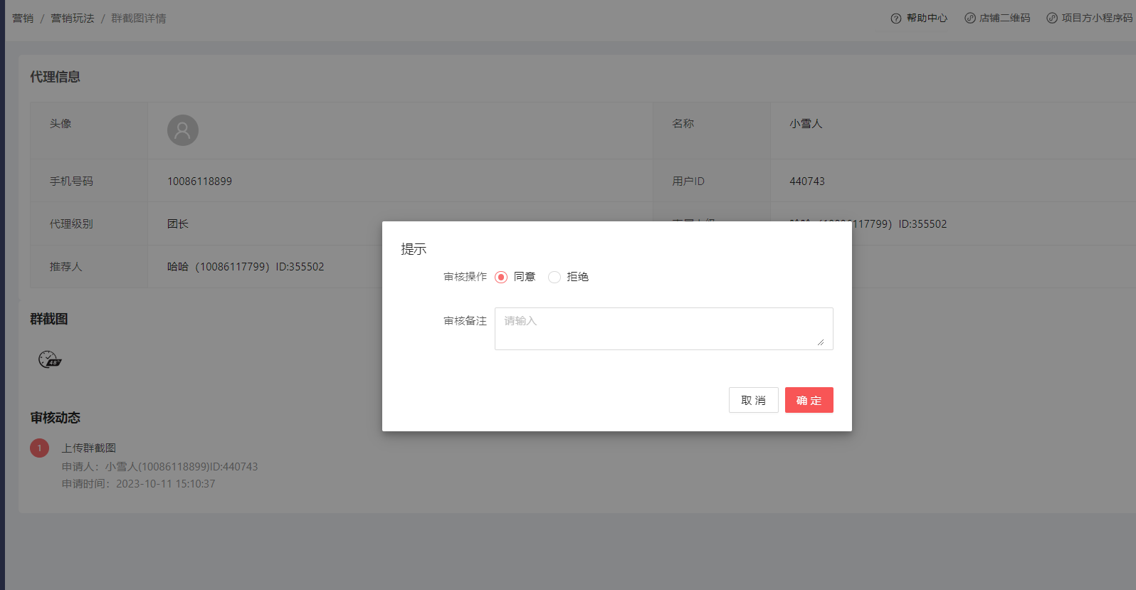 点击审核,会弹出“同意” 或者“拒绝”