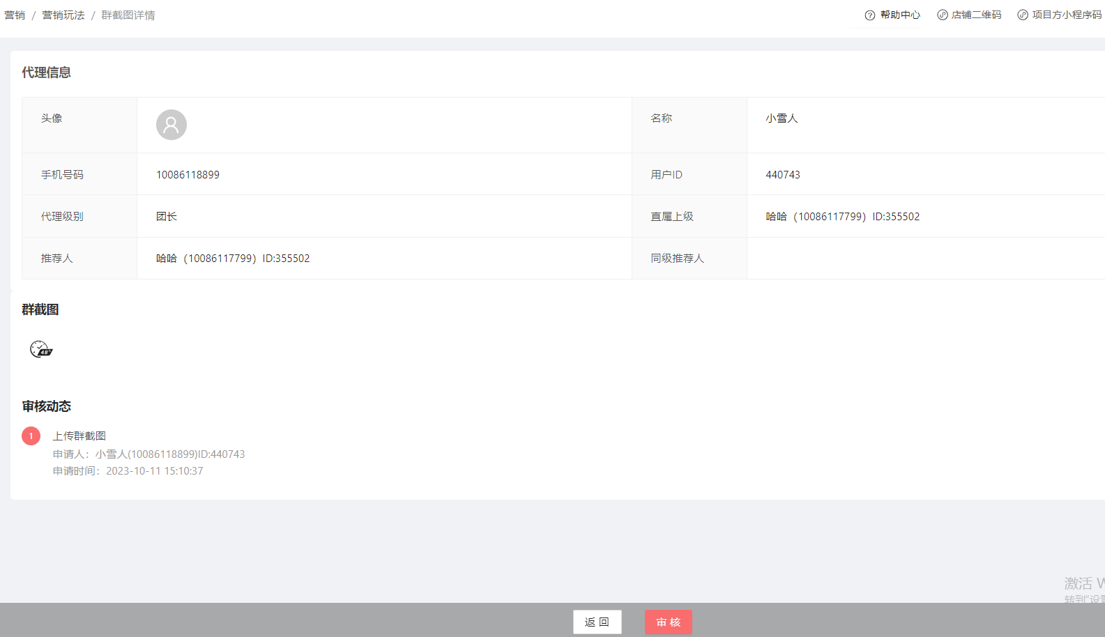 上传群截图审核仅针对最低级别代理上传,项目方后台审核后即可增加活跃值哦!