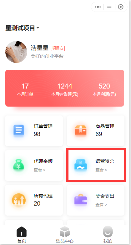 运营资金,即给代理发放奖金的一个单独的奖金池账户。只要运营资金账户充足,系统会自动给代理发放奖金。