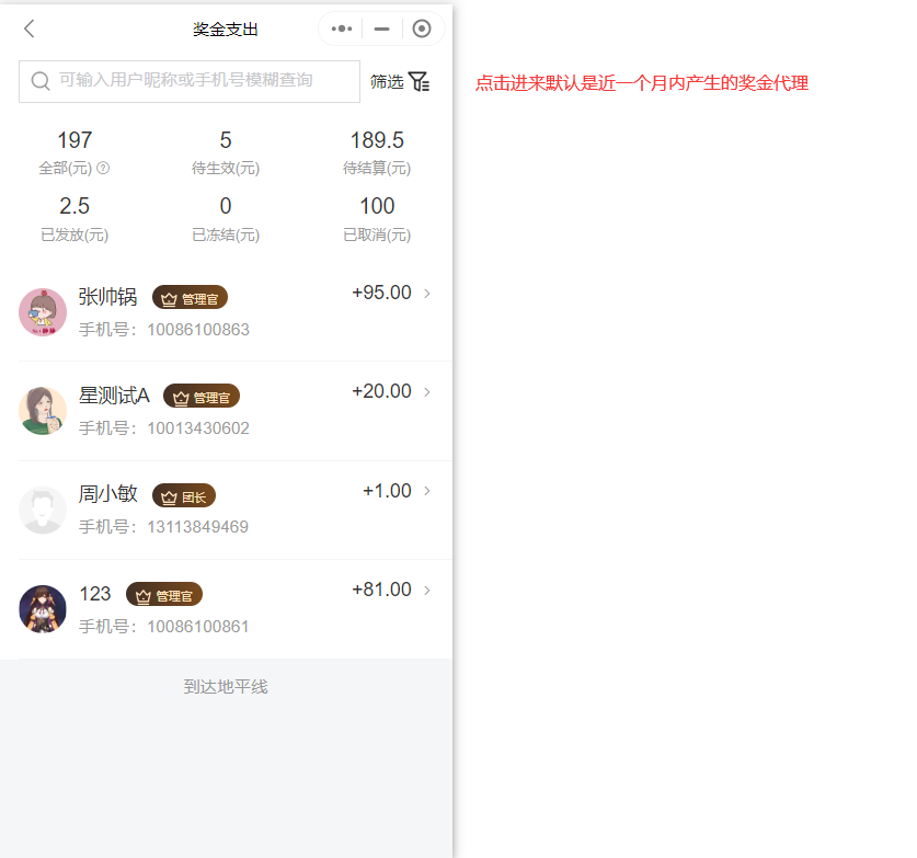 奖金支出这里的奖金支出和电脑端(PC端)代理奖金是一样的,都是查看所有代理的每一笔订单的奖金的具体状态和具体明细情况.在工作台–奖金支出: 点击查看,可以看到近一个月需要支出的奖金明细:作者:admin 创建时间:2023-05-31 17:15最后编辑:admin 更新时间:2026-03-31 17:07