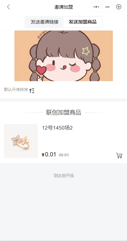 在代理端-我的-代理后台-邀请加盟-点击发送加盟商品,就可以看到加盟商品页面: