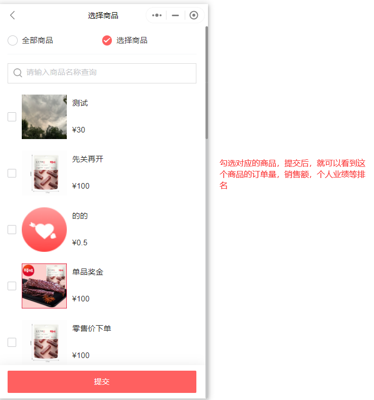 除了根据以上订单量,销售额,收益,个人业绩,以及招新人数查看排名情况以外,还可以根据商品查看排名情况: