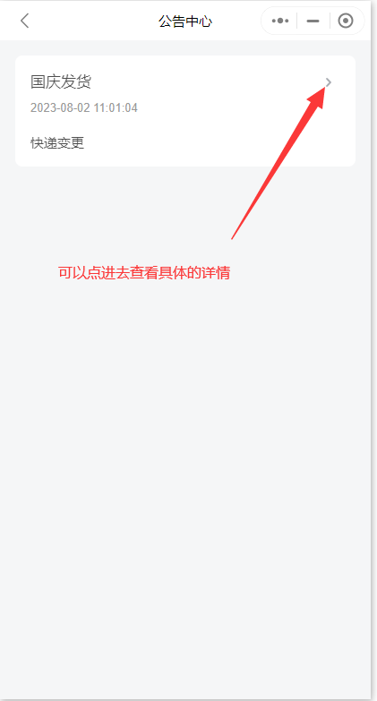 6.公告中心:项目方通过系统后台发出的相关通知,用户可通过公告中心入口查看