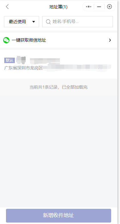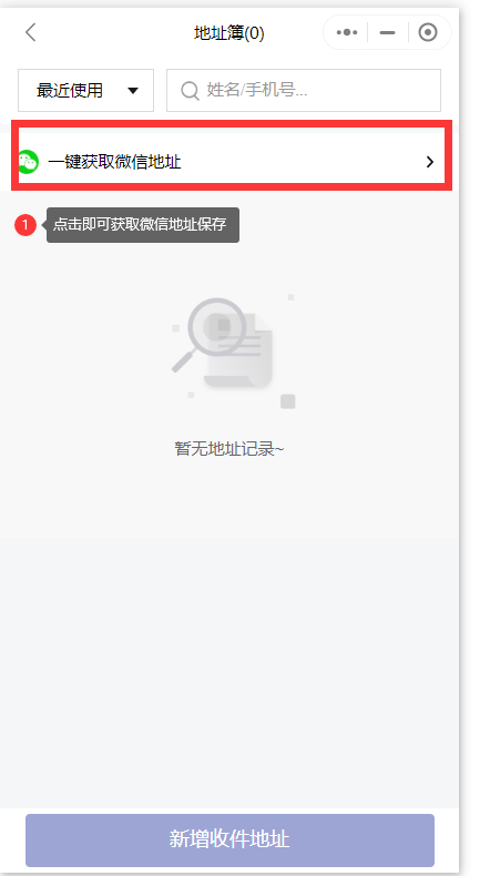 1.地址簿;主要是保存常用的收货地址,如没有手动选择或者复制,默认点进去可以一键获取微信地址,截图如下: