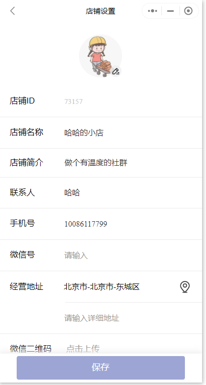 7.店铺设置:即当前登陆的代理,可以通过店铺设置修改自己的店铺信息,例如,店铺名称,店铺简介,联系人名称等信息