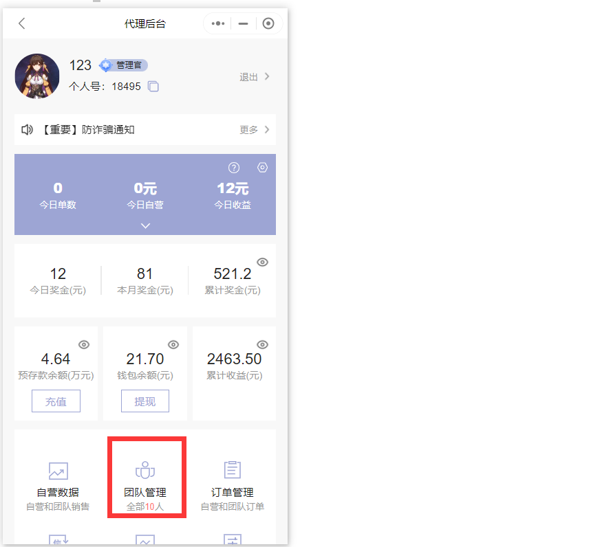 因为代理的团队和奖金信息一样都涉及到敏感信息,用来规避风控,也是需要再代理后台查看和搜索的。
