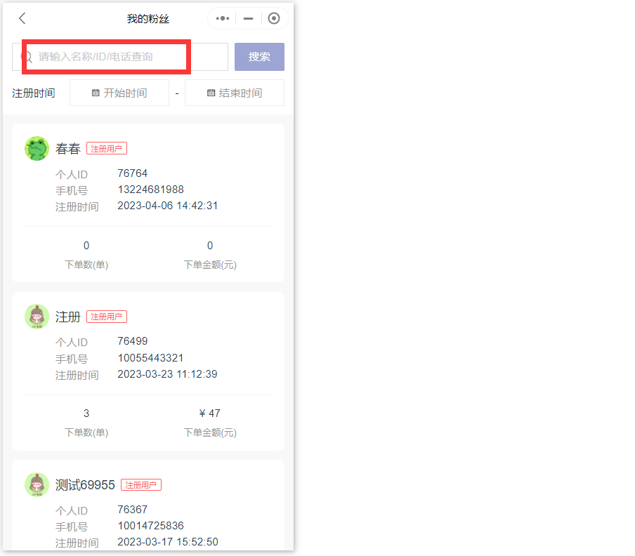 点击进去可以根据名称,电话号码和ID,搜索代理