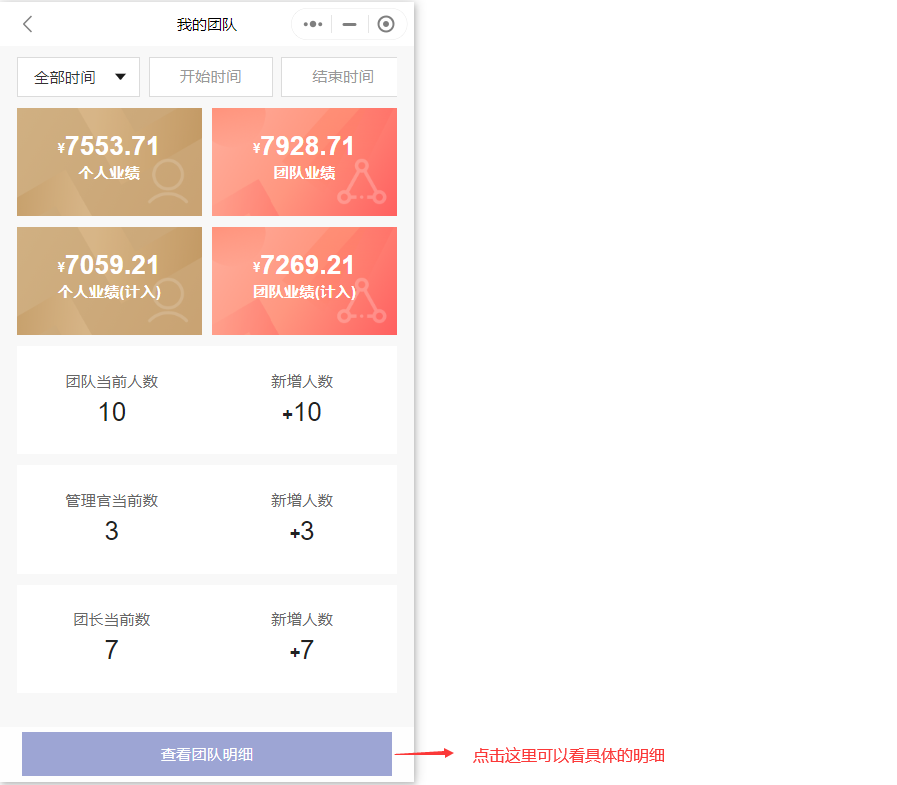 点击进入可以看到整个团队的业绩和人数的概况