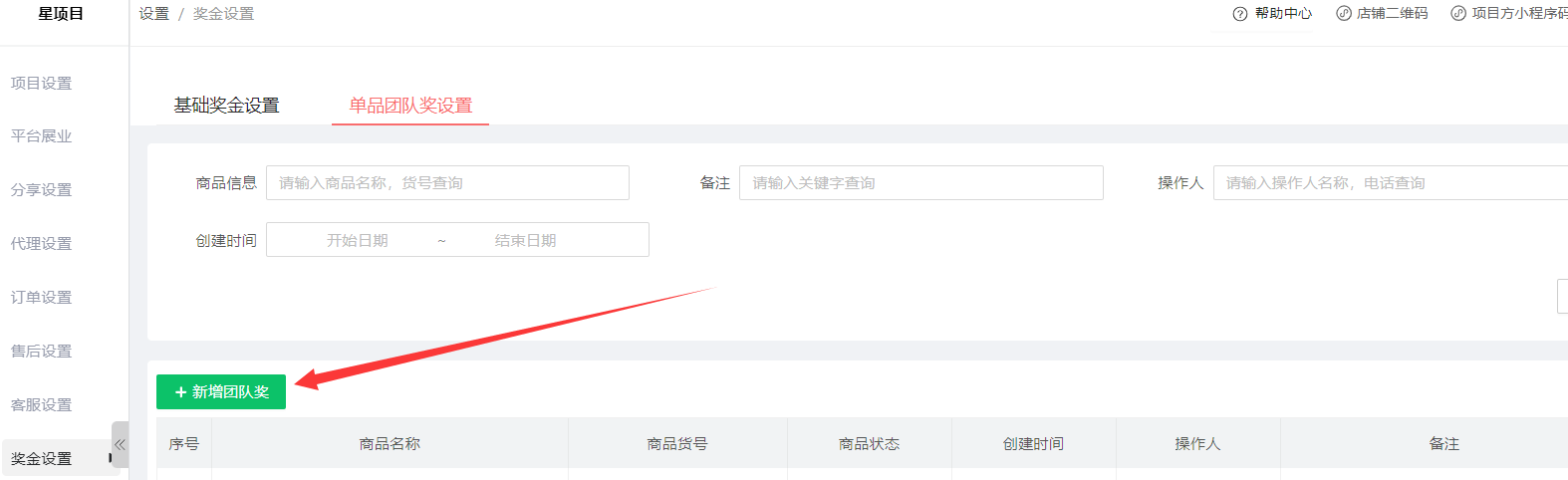 点击新增团队奖;