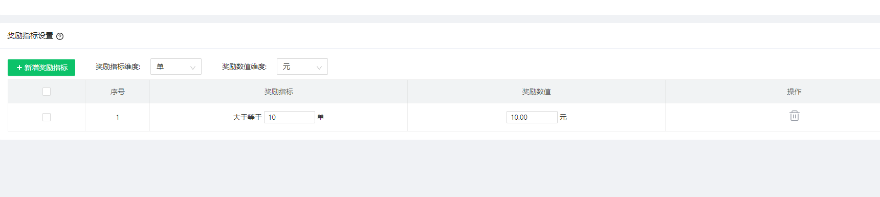 奖励指标设置: