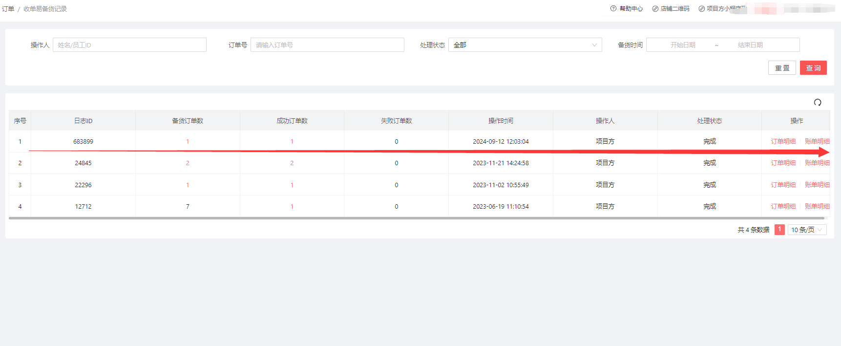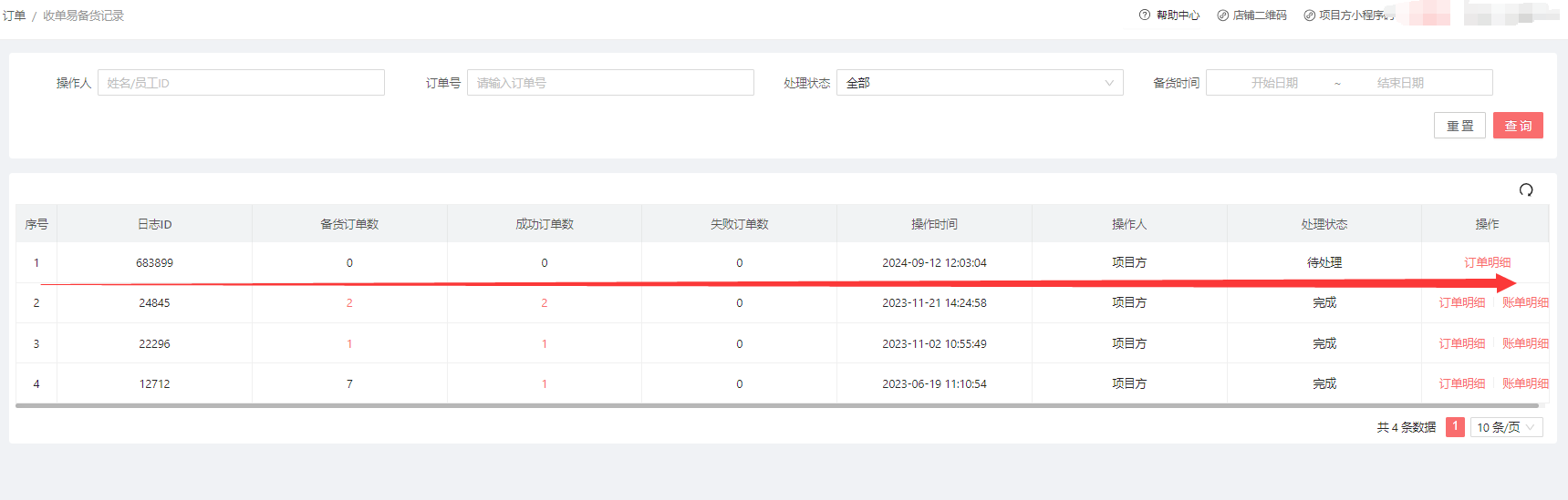 收单易备货记录: