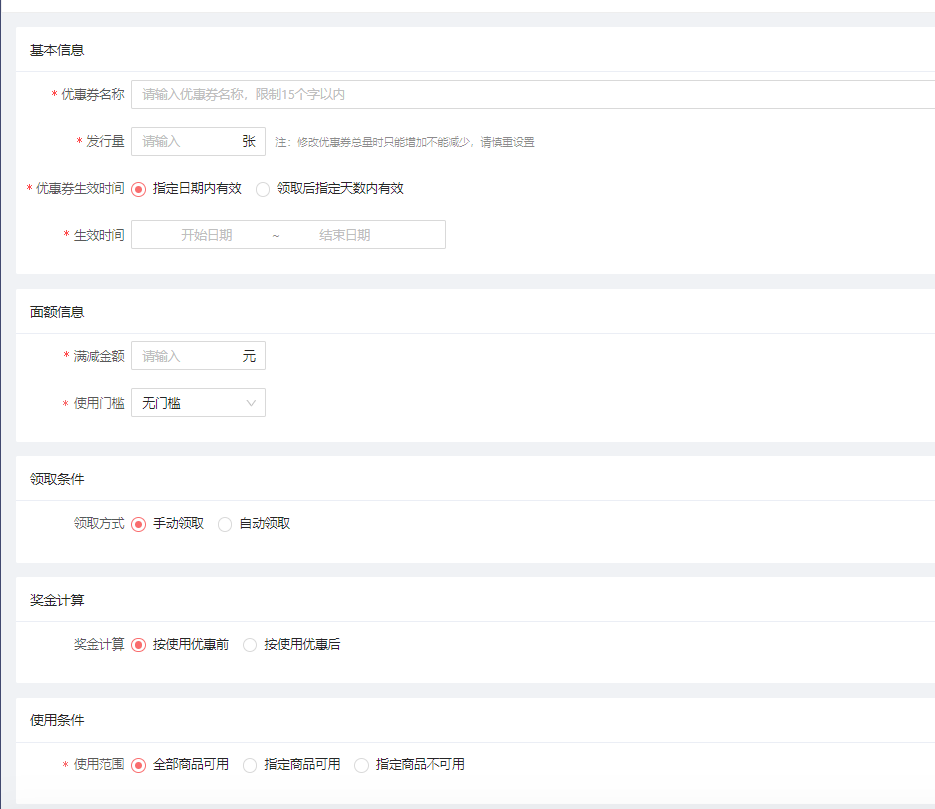 创建优惠券的注意事项,具体可以参考优惠券的操作指引。