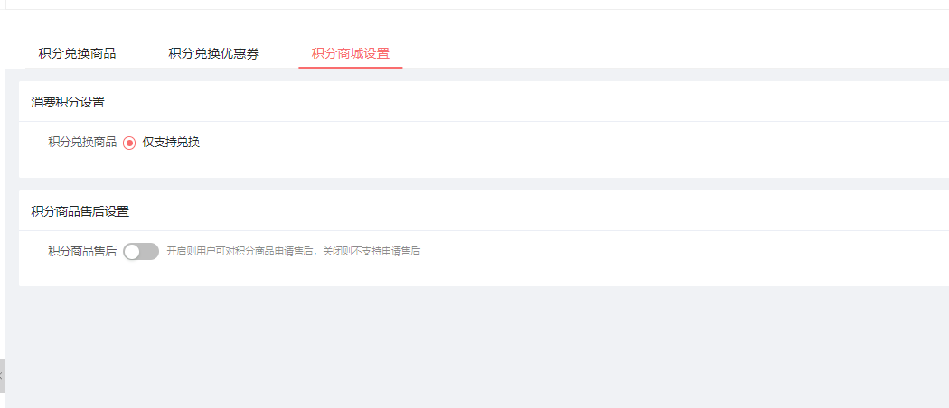 即积分兑换的商品,是不是支持售后,开启则用户可对积分商品申请售后,关闭则不支持申请售后。