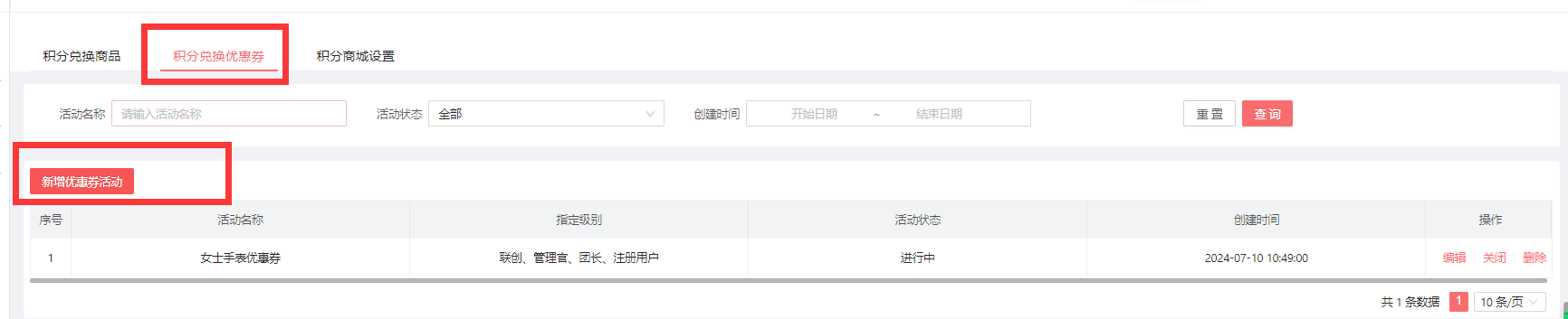 创建好优惠券后,再去在营销-工具类-积分兑换-积分兑换优惠券-新增优惠券活动。