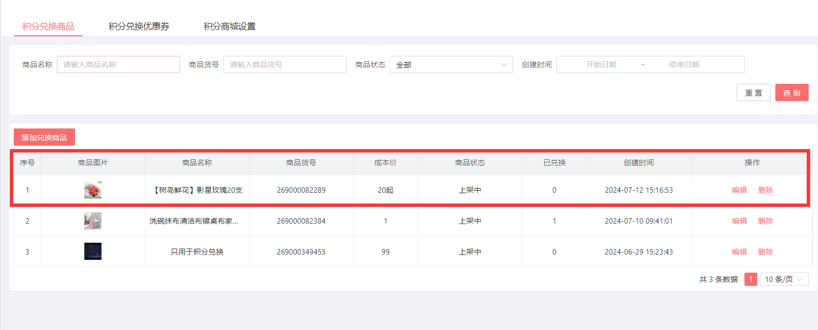 1.积分兑换商品设置: