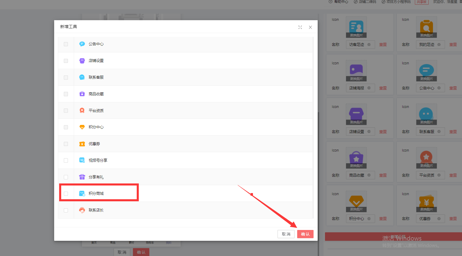 点击确认,在确定,代理端,我的工具就出现积分兑换商城的入口。