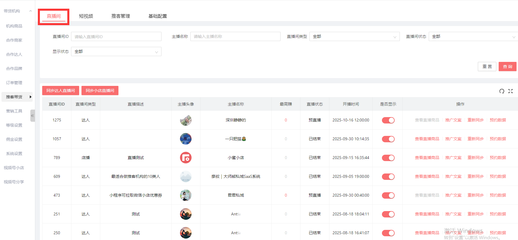 直播间:即已经合作的达人或者商家的直播都会显示在这个列表。这里直播间的类型,主要是达人的直播间,或者商家即店播的直播间两种。作者:admin 创建时间:2025-07-30 11:19最后编辑:admin 更新时间:2026-03-31 17:07