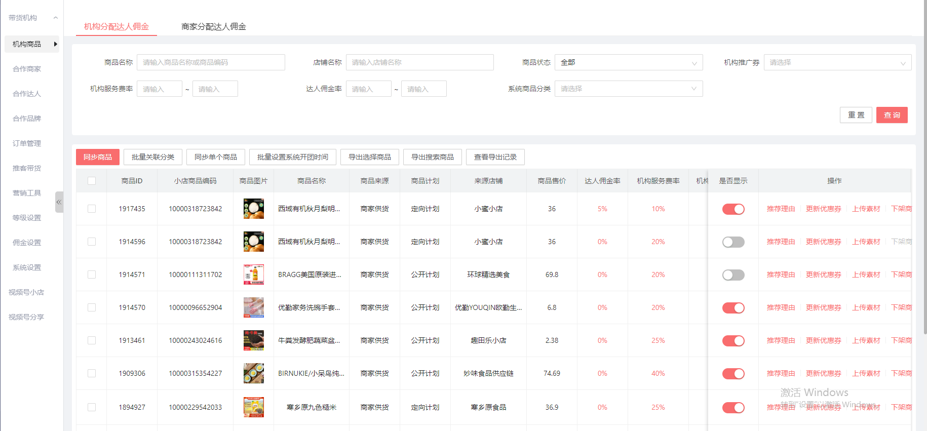 机构分配达人佣金:微信小店商家,设置定向推广-选择指定机构-选机构分配佣金,同时联盟带货机构:在选品-定向商品的,就会显示在“机构分配达人佣金”的商品列表了。机构分配达人佣金商品列表显示如下: 具体在联盟带货机构选品的流程操作,可以联系我们获取带货机构的操作指引。在机构商品这里,可以同步商品,批量关联设置好的小店商品分类。作者:admin 创建时间:2025-08-22 15:33最后编辑:admin 更新时间:2026-03-31 17:07