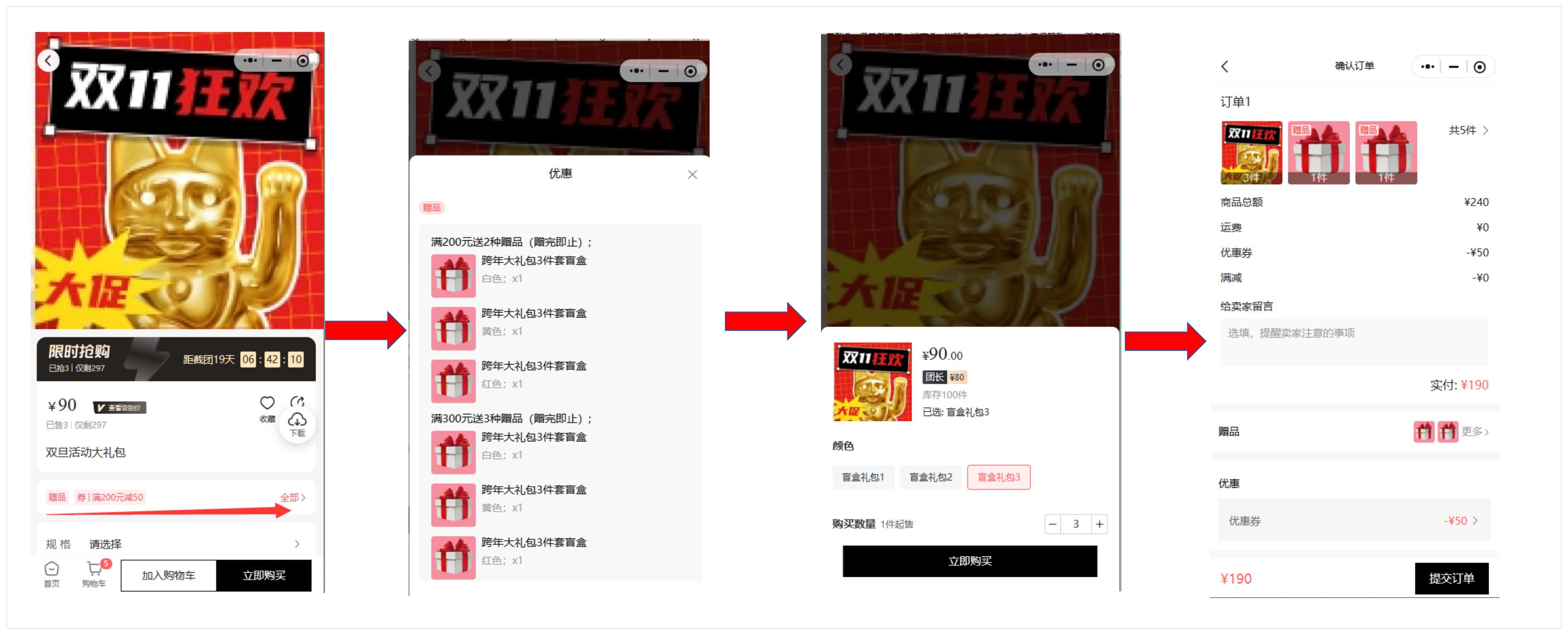 3.用户下单流程截图显示如下: