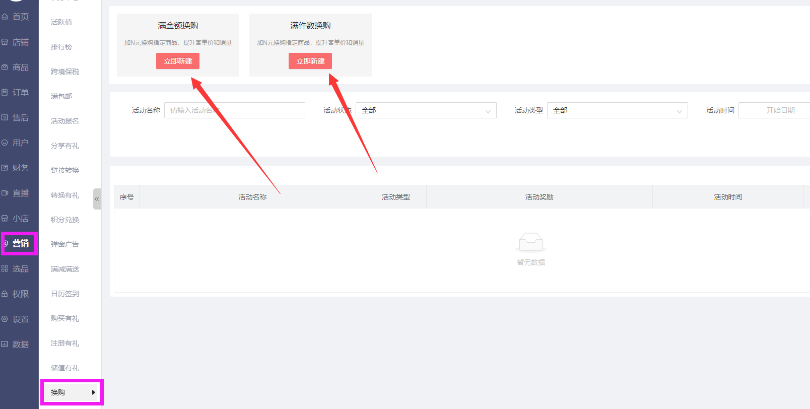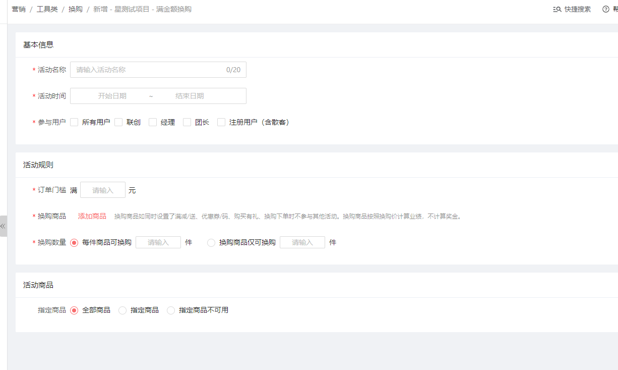 点击立即新建,以满金额换购为例: