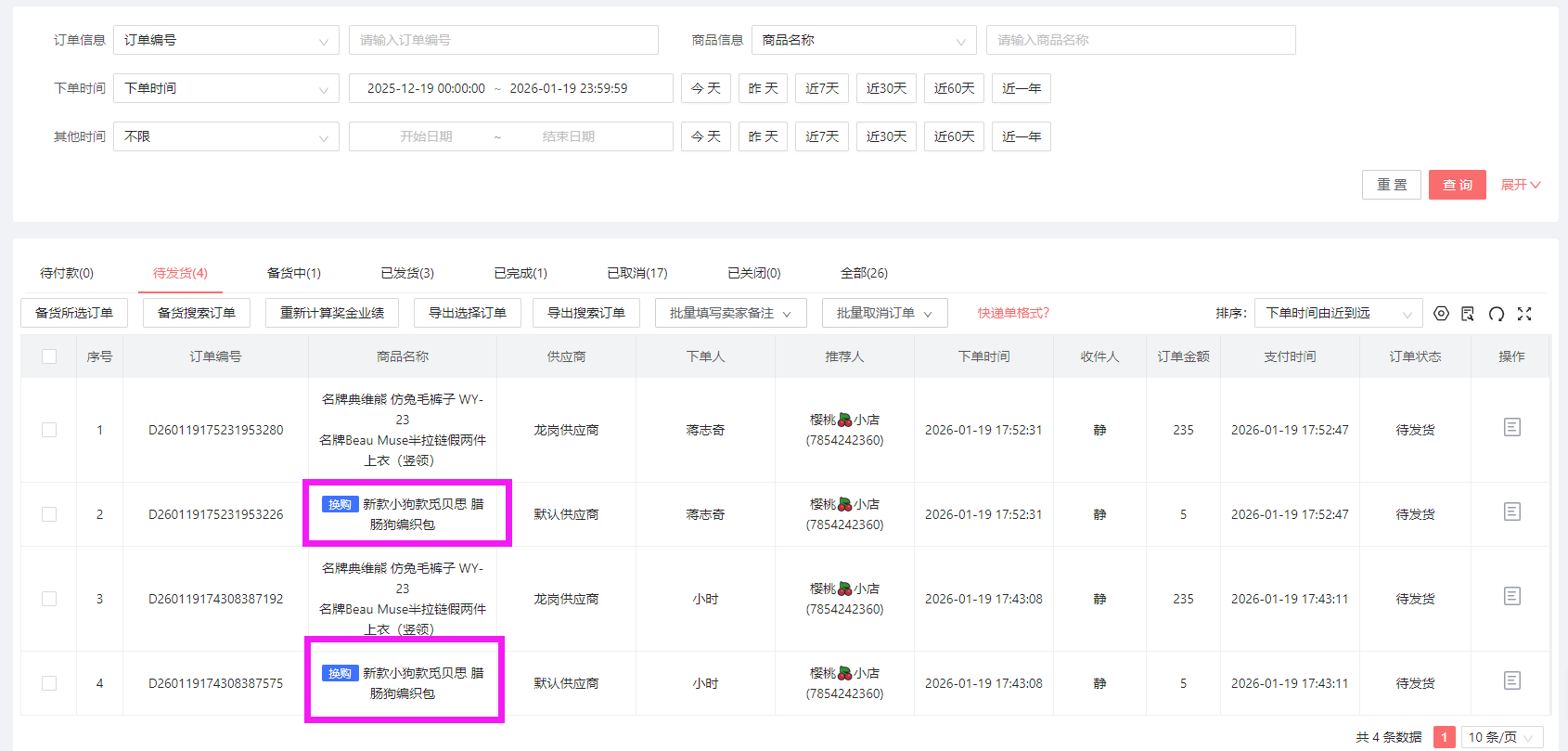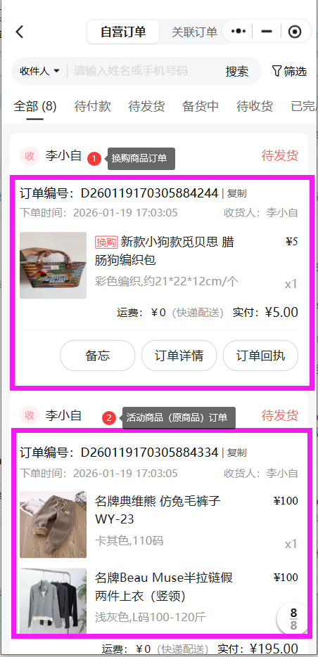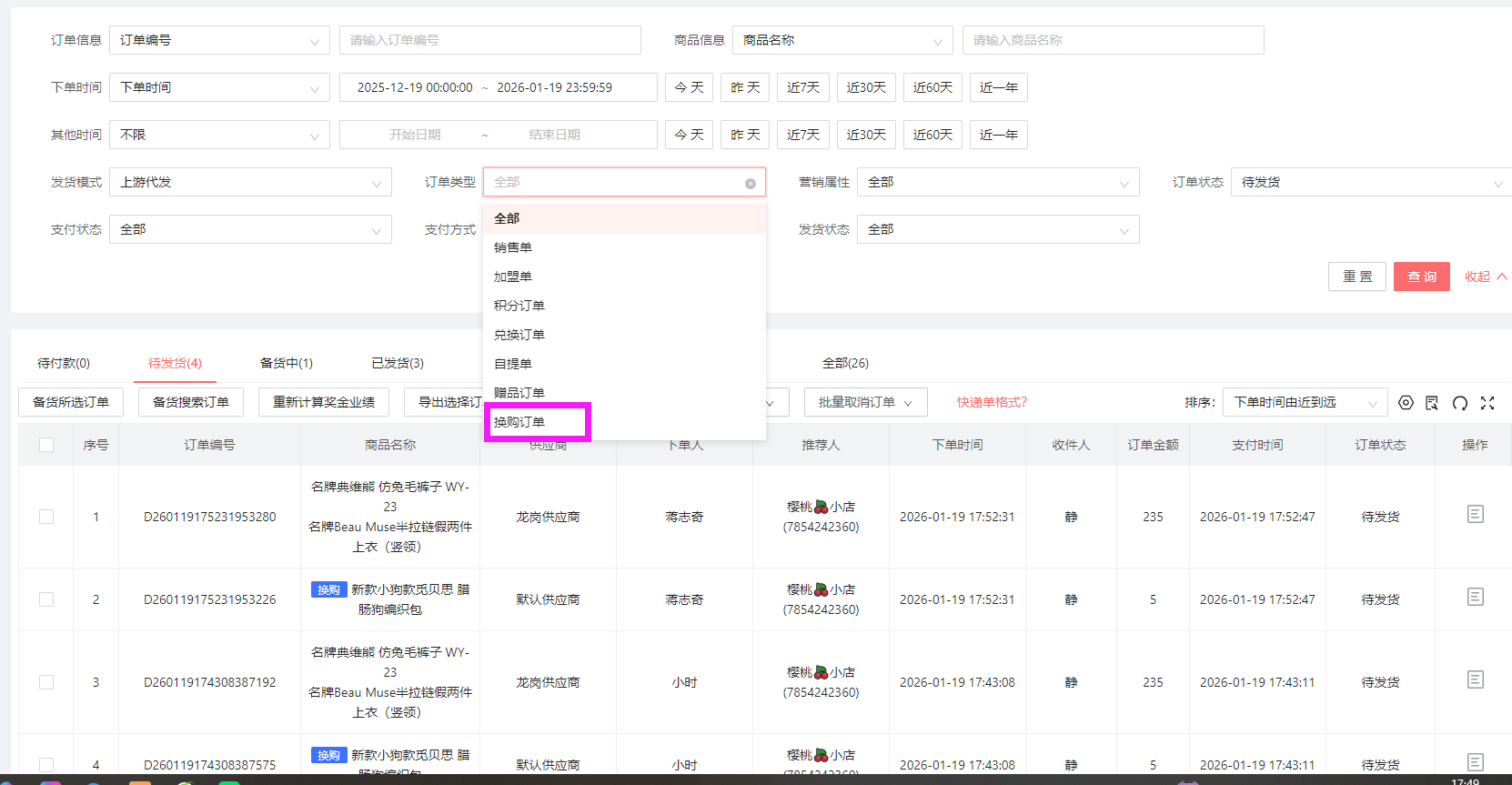 同时在订单列表中,也可以根据订单类型筛选换购订单的: