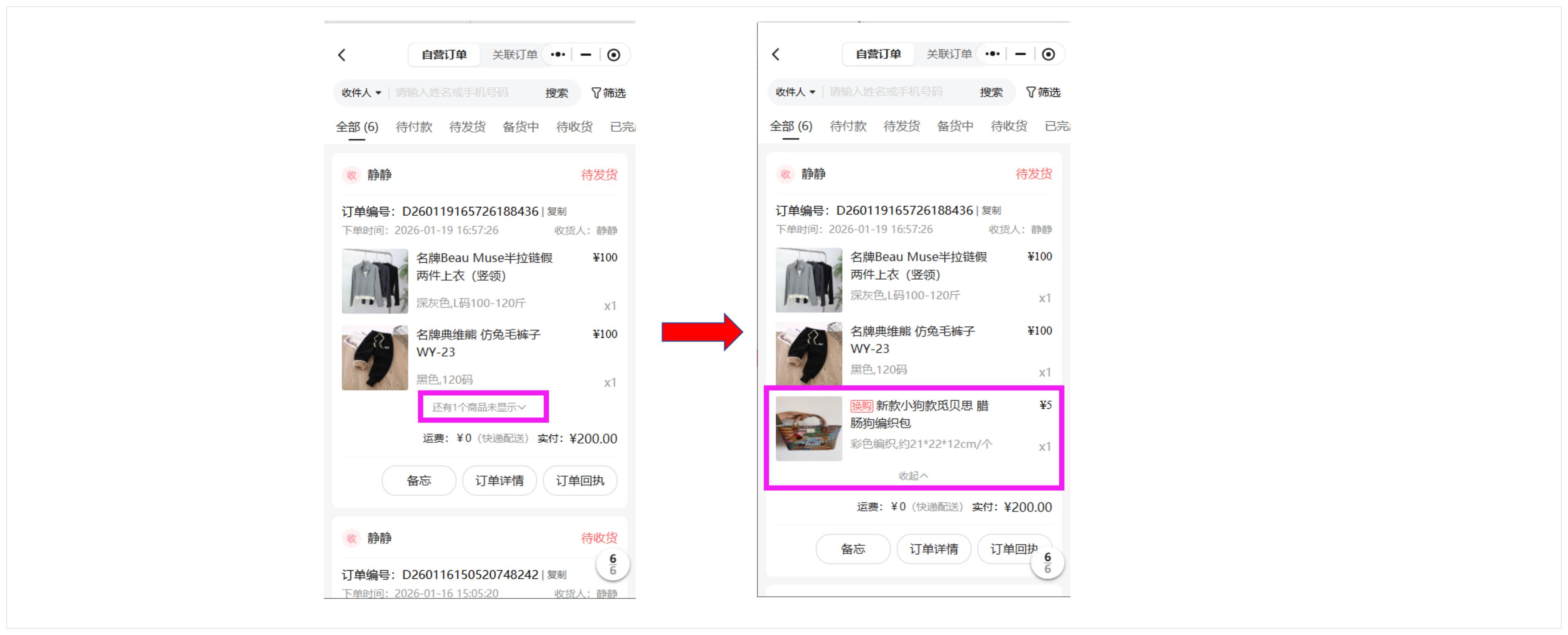 后台的订单显示如下:换购的订单,在订单前面会有“换购”标识的。